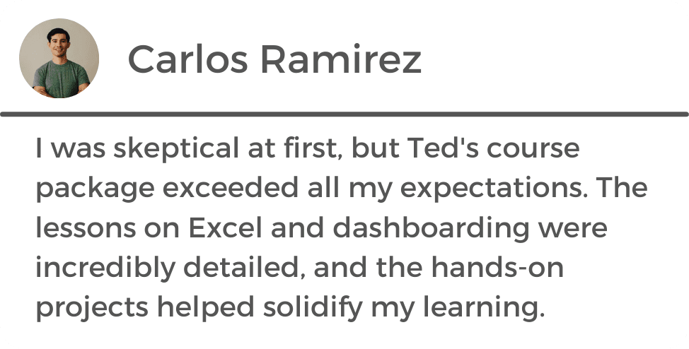 My name is Ted Jordan, and throughout my career as a Business and Media Analyst, I’ve seen firsthand how powerful data skills can be. From landing promotions at Yahoo within just a few months to helping companies streamline their operations, it all started with mastering Excel, SQL, and advanced data visualization techniques.