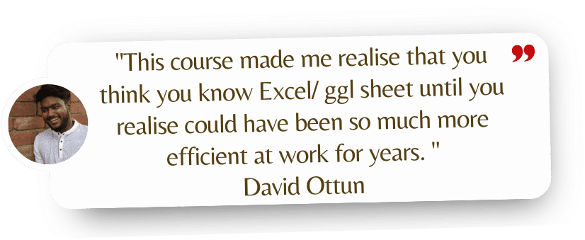 After registration, you decide when you want to start the free Spreadsheet course. It’s a self-paced training, you can start 2 months after signing up for the course or straightaway. You decide.